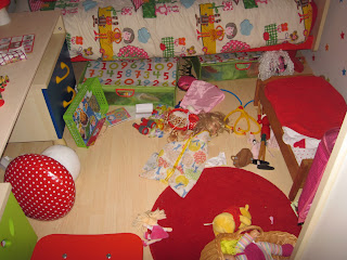 And this is what the kidsrooms looked like after a fun afternoon playing. (and I didn't even take a picture of the living room; they played there too ;-)